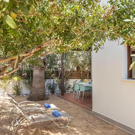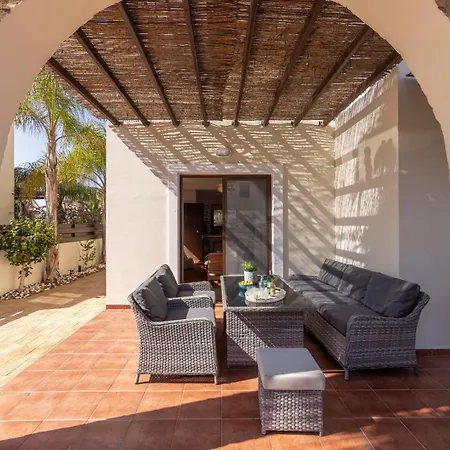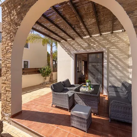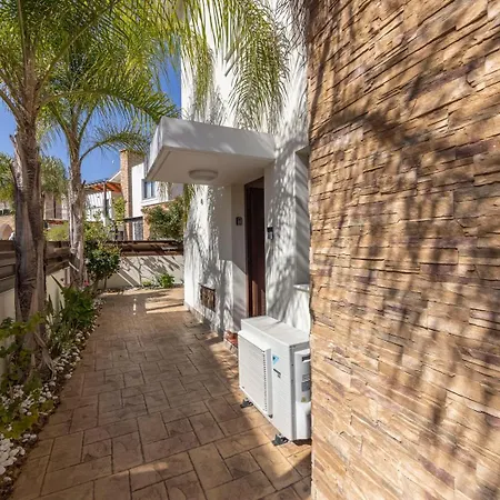 Villa Ionion 27 Ayia Napa med 3 sovrum, som ligger cirka 25 minuter till fots från Agia Theklas strand, har en terrass med utsikt över trädgården.
